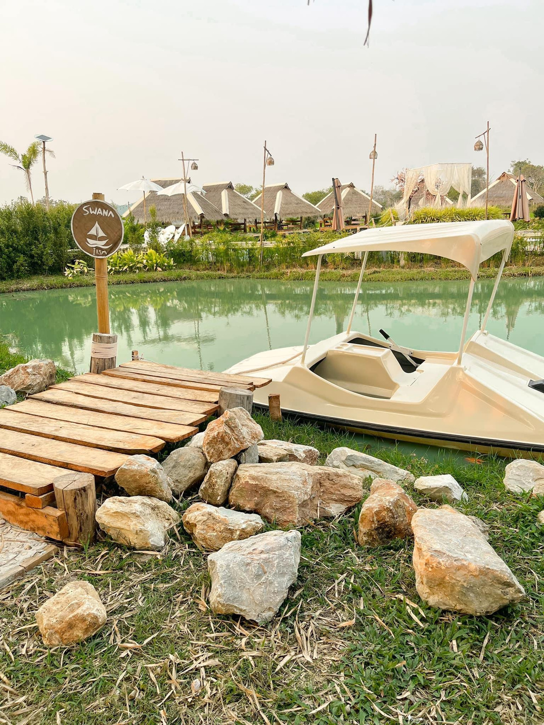 โซนอาหารจะอยู่ท่ามกลางทุ่งนา ตกแต่งเป็นซุ้มอาหาร ล้อมรอบสระน้ำอันเขียวขจี เกาะกลางสระน้ำตกแต่งด้วยดอกไม้สีชมพู สวยงาม สบายตา